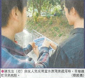 在三月初已報名參加比賽的陳先生表示,他本身是童軍領袖,在朋友慫恿下以二千三百多元(一隊二個人)參加男子公開組比賽。他質疑在萬宜水庫東壩進行飛索過河時,工作人員容許兩人同時游繩,因為按一般安全守則,應該只准一人過河,他更指由於鋼纜下降斜度不足難以滑行,工作人員用鋼釘改變鋼纜的斜度,陳先生親眼目擊鋼釘突然飛脫彈出,險象環生。