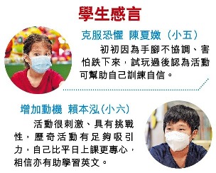李玉枝表示,除學科知識外,學校亦重視學生的德育及性格培養,「不可以只是用口講,要透過實作、親身經歷」,希望學生透過歷奇課程,反思如何面對任務失敗,小朋友面對成功就很容易,但是面對失敗,應如何調整心態,下次再出發,達到成功。